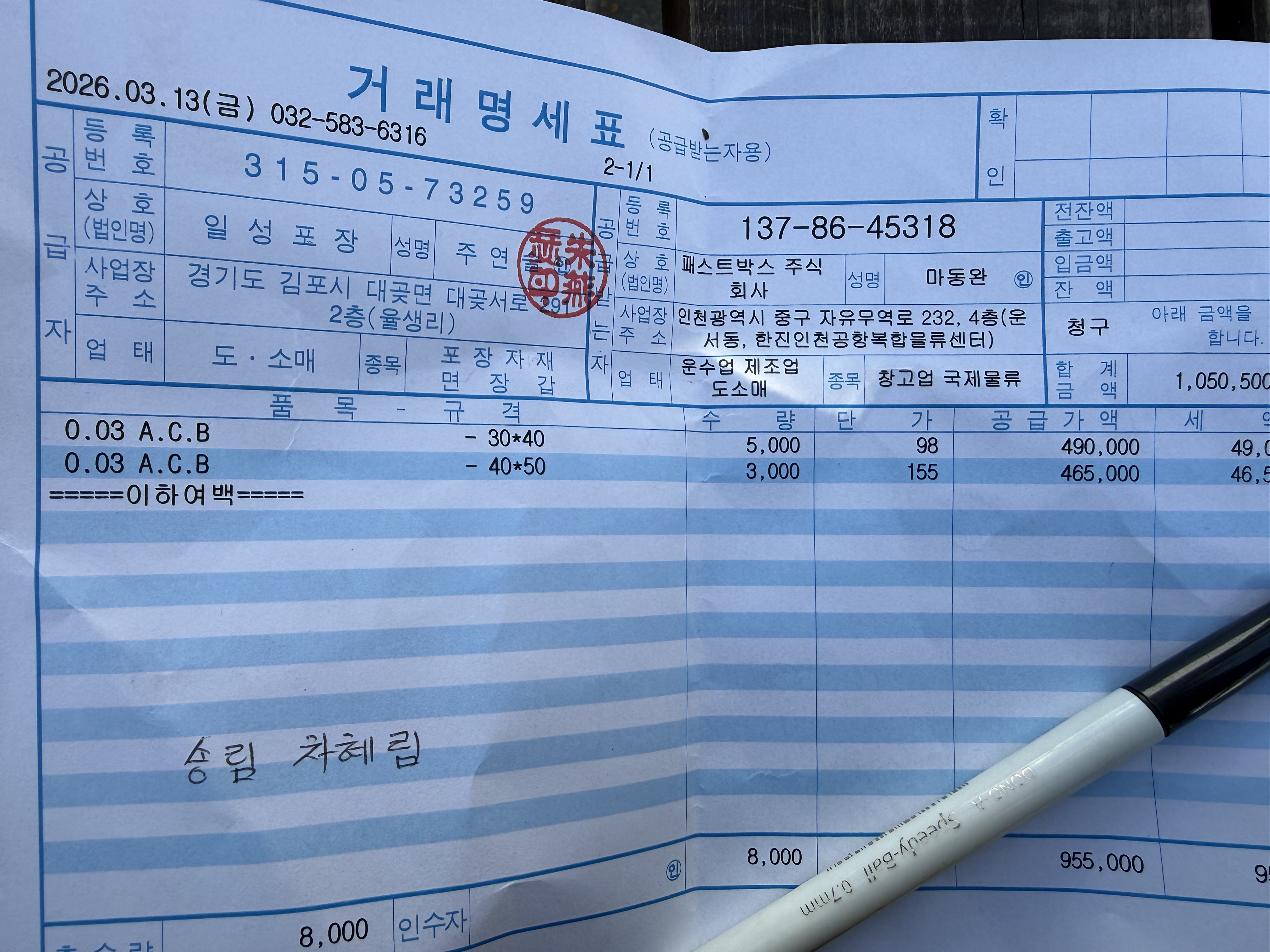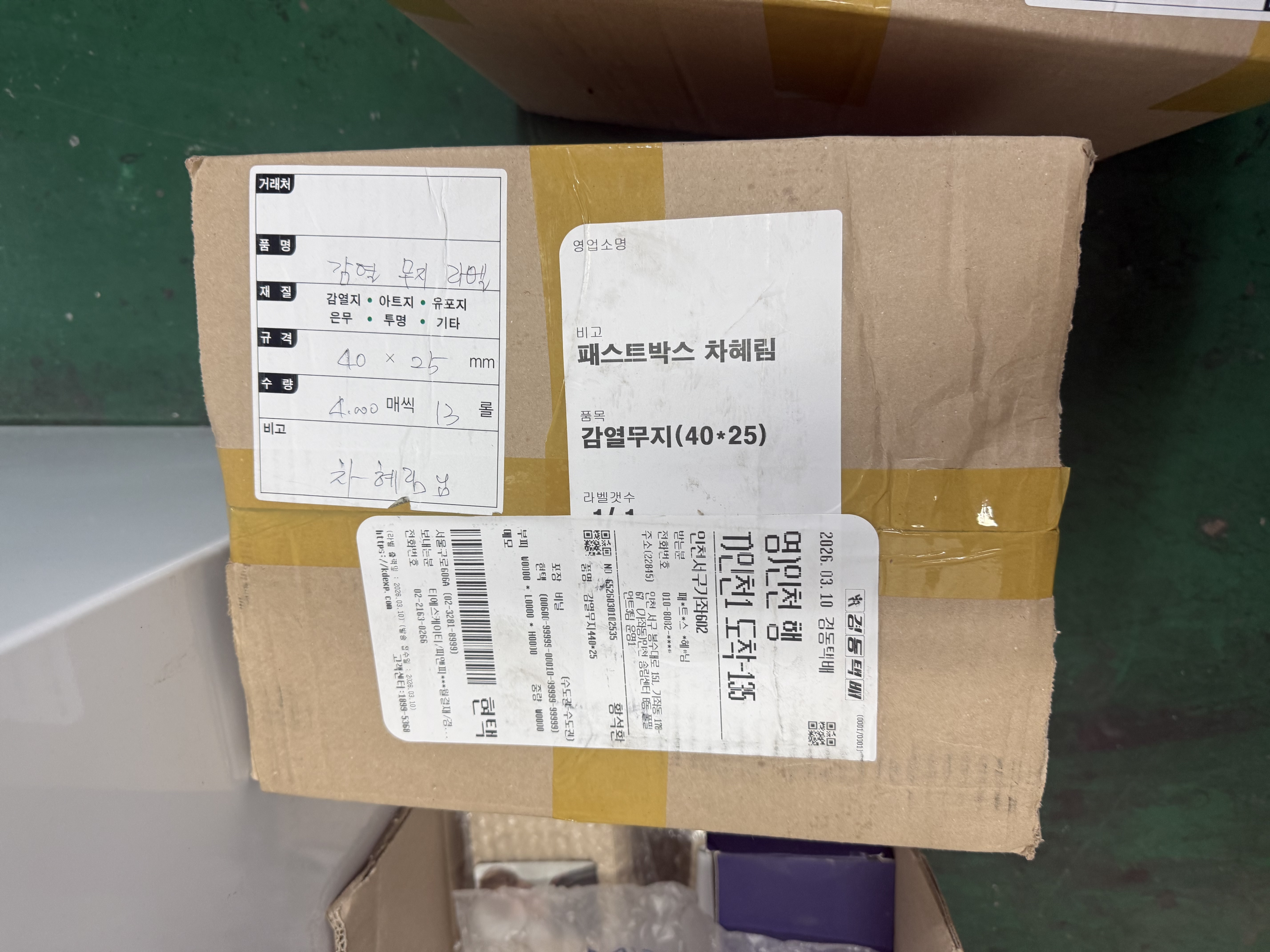 #1. 라벨지40/25 / 수량 : 50,000 / 규격 : 40*25
