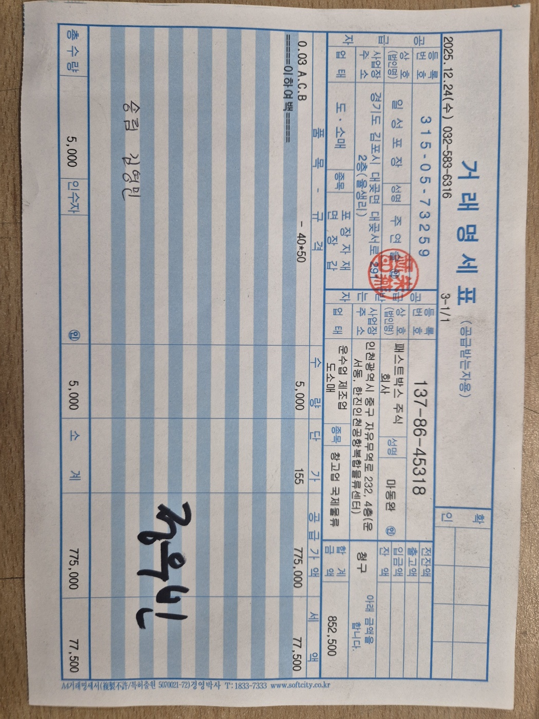 #1. 에어봉투3/40/50 / 수량 : 5,000 / 규격 : 0.03*40*50